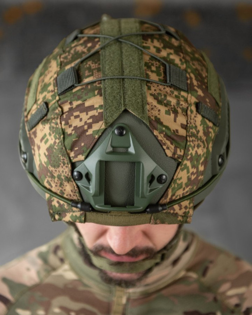 Чохол призначений для маскування на пересіченій місцевості та добре захищає від зовнішніх впливів. Також він має вирізи на передній частині, що дають доступ до кріплення ПНВ. Основна частина чохла зшита з Cordura 1000D і з боків оснащена сіткою, що дозволяє зручно натягнути кавер на шолом. Кавер легко кріпиться до шолома за допомогою велкро хлястиків, що кріпляться під подушки. Спеціальні стропи та гумка вздовж чохла дозволяють зручно закріпити шнури або додаткове маскування. Додатково є панелі велкро, що дозволяють закріпити улюблені патчі, маячки або ідентифікатори.